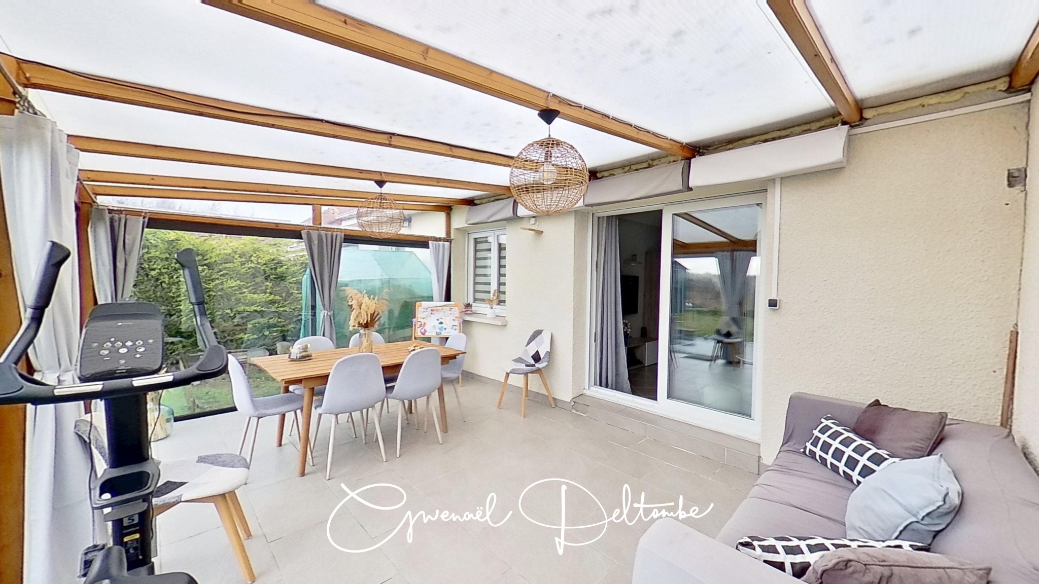 Une véranda non comprise dans la surface habitable vient compléter l'espace de vie et permet de profiter pleinement des volumes.